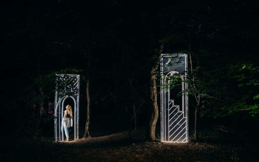Szeretem magamat folyamatosan feladatok, kihívások elé állítani, kilépni a komfortzónámból. Ez is kilépés volt a megszokott kétdimenziós vizuális közegből, és nagyon érdekesnek tartottam, hogy mi történik akkor, ha ez most nem papíron jelenik meg. Nem a kertet akartam bevinni a falak közé, hanem a motívumot kivinni a természetbe, mert meg akartam tapasztalni, hogy mi történik ezzel a szimbólummal az erdőben.