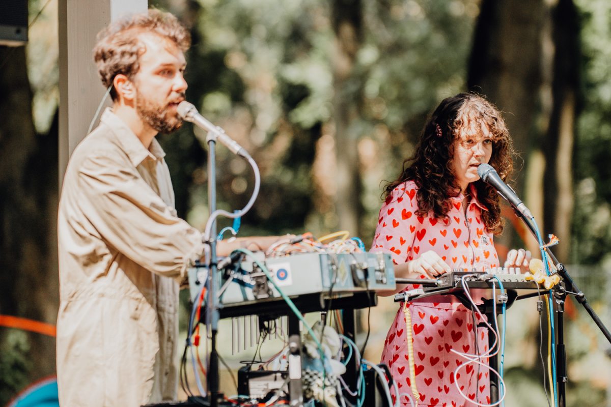 A szerdai nyitónap persze a friss Grammy-díjas Charli XCX-ről szólt: már kora délután is a brat summert hirdető pólókban és neonzöldben feszítő fesztiválozók lézengtek a Szigeten. Első utam a Múzeumok standjához vezetett, ahol csak kikötöttem némi bolyongás után a Swim Swim Naked koncertje végén. Az elektronikus pop duót 2024-ben alapította Nagy Krisztina énekesnő és Makkay Dani producer: zenéjükre jellemzőek a különleges zajok, pittyegős hangzások, kísérletező ritmusok és groove-ok. Az akusztikus koncerten jól szólt az Octopus, csobbantunk és elmerültünk, hogy aztán nem sokkal az Aurevoir. különleges duója vegye át a stafétát.