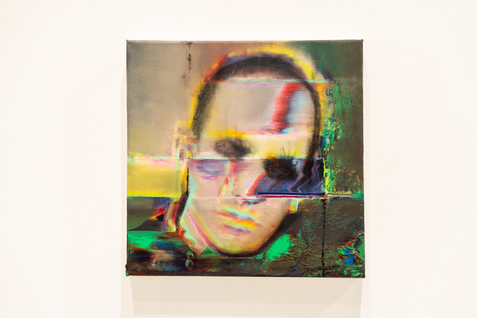 A digitális jel sérülésére utaló elcsúszások, az RGB-színek kifordultsága azt a törékeny pillanatot idézi, amikor a kép világa megbicsaklik – a „glitch” így válik egyszerre esztétikai jelenséggé és gondolati motívummá. Úgy hatnak, mintha a festmények egy meghibásodott, széthulló világ vizuális bizonyítékai lennének. Szűcs számára ez a rendellenesség régóta formateremtő elv: nála a hiba nem zavaró mellékhatás, hanem a képiség működését meghatározó szervezőerő, amely folyamatosan emlékeztet a festészet eredendően analóg, emberi természetére.
