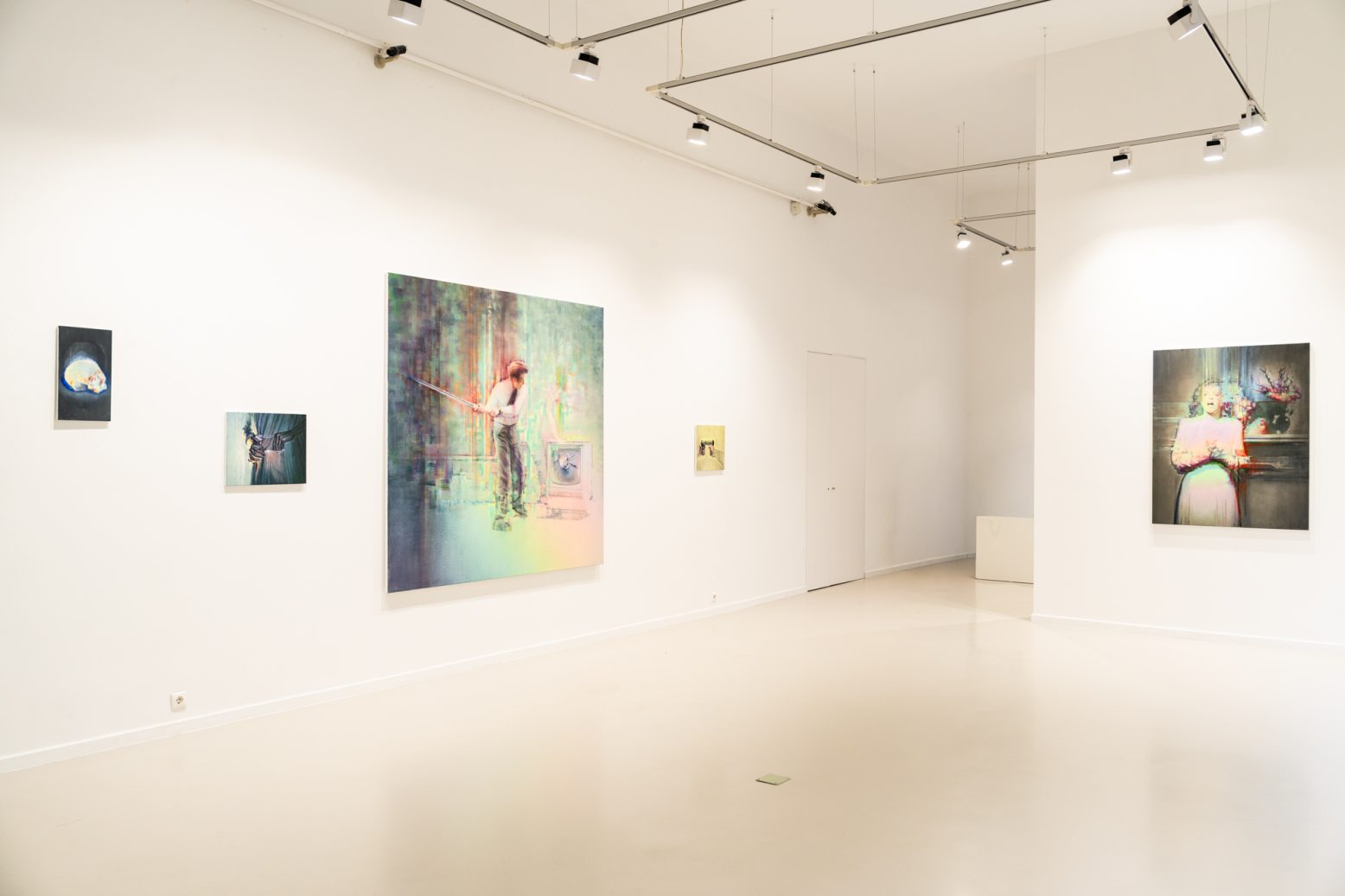 A képek izgalmát tovább fokozza, hogy a felismerhető formák finoman absztrakcióba csúsznak át: olykor digitális képhibákra emlékeztető elmozdulásokként jelennek meg, máskor festői gesztusok oldják fel a figurativitást. Ezek a rétegek úgy működnek, mintha maguk radíroznák ki a valóság és a fikció közötti határt.