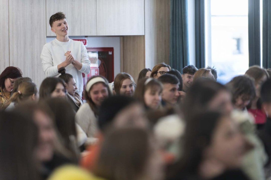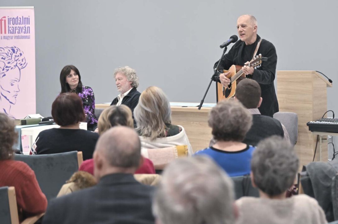 Az utazás első állomása Szatmárnémeti volt, ahol a Megmaradás Háza adott otthont a Petőfi Kulturális Ügynökség és a kolozsvári főkonzulátus társszervezésében megvalósult programoknak. Az egy éve átadott, tágas, modern épületben közel kétszáz diák gyűlt össze a város magyar iskoláiból a rendhagyó irodalomórára. Juhász Anna kezdésként a Karaván céljáról beszélt, arról, hogy a 2022 januárjában, tehát éppen egy éve útnak indult programsorozat miképp segíti a határokon átívelő kötelékek megerősítését az irodalmon keresztül, és hogyan találhatunk kapaszkodót az olvasásban, a versekben. Ehhez kapcsolódóan bemutatta az idei, Petőfi Sándortól származó mottót is: „Legyen minden dalunk egy-egy vigasztalás”.