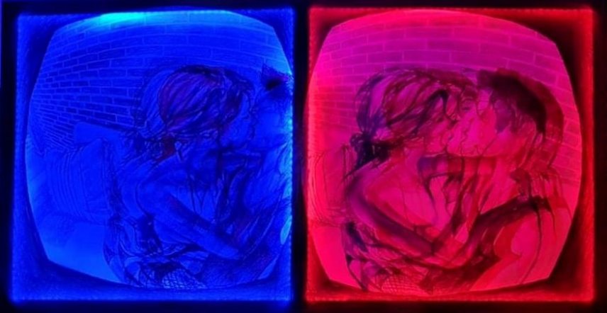 Jelenleg azt vizsgálom, hogy a VR-technológia és a mesterséges intelligencia hogyan jelenik meg a szexuális játékszerekben és szolgáltatásokban. A Virtual Love című sorozatomban úgy ábrázolom az alakokat, mintha kétféle lencsén keresztül jelennének meg. Dolgozom egy nagy, programozható nőt ábrázoló képen is.