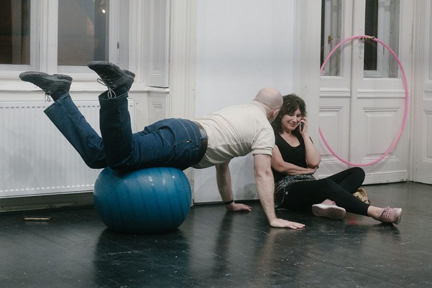 Hudáky Rita fordította a darabot, Juhász Nóra tervezte a látványt, és egy fiatal, dramaturg szakos alkotóduóval: Dohy Balázzsal és Komán Attilával dolgoztunk együtt. Anno drága Lengyel Anna mesélte, hogy milyen tehetséges ez a két fiú, és egyébként is mindig figyeljük az új generáció munkásságát: elmegyünk a vizsgáikra, rendezéseikre, és szívesen dolgozunk pályakezdő fiatalokkal. Érdekes darab. Kisvárosi drámafoglalkozásokról szól: furcsa meditáció a színházról, az életről, az idő múlásáról. Attila azt mondta: izgalmas, hogy nem személyes drámák történnek benne, hanem az azok közötti időszakot mutatja be; egy újabb vihar előtti csendet.