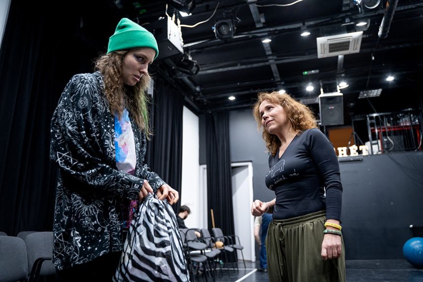 Igen, ez a „mindent egyszerre csinálunk” szerintem amolyan női dolog. Először még közösen írtuk és rendeztük is a darabokat, de később a mi ötleteink alapján ugyan, de már felkért írókkal dolgoztunk. Visszanézve meglehetősen kaotikus lehetett, ahogyan egy jelenet után két rendező is elmondta a színészeknek az instrukcióit. Ezért úgy döntöttünk, hogy vendégrendezőkkel fogunk együttműködni. Kitaláljuk, hogy miről akarunk beszélni, és ahhoz hívjuk a megfelelő rendezőt, majd vele közösen alakítjuk a színdarabot. Az előadásaink gyakran úgy születnek, hogy nincsenek előre megírva. Kortárs drámákat viszünk színre, amelyek közül sokat mi írtunk; vagy külföldi írónők műveit mutatjuk be itthon.