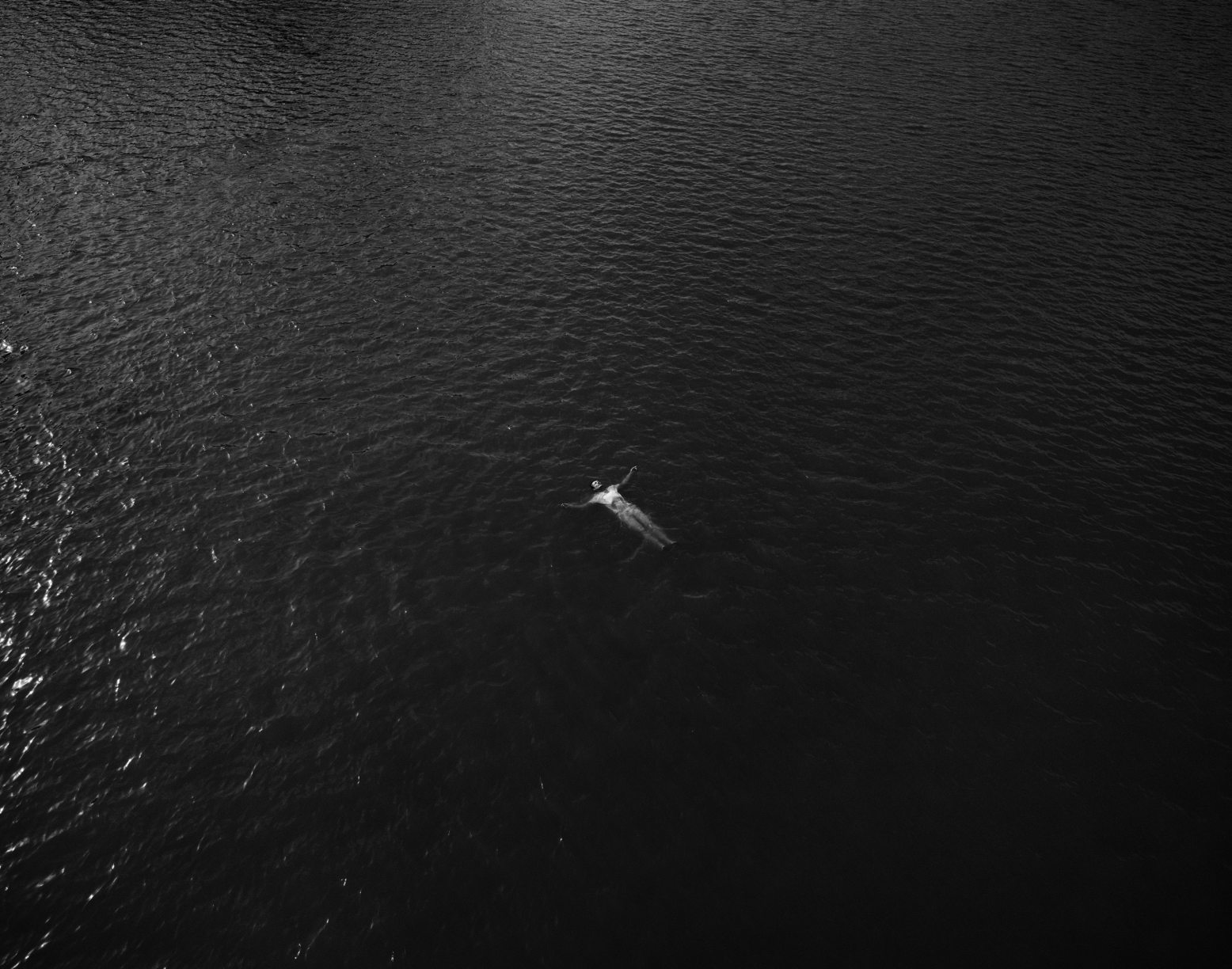 Hármat emelnék ki. Az elsőn egy létrát és annak földre vetett árnyékát látjuk. Az ember természetes és veleszületett vágya az előrejutás, a mindig eggyel magasabb szintre lépésre vágyódás a hierarchikus világunkban. Ez a „mindig egy picit több kell” gondolat hatja át az addikció egészét is. A sötét árnyék a zuhanást és földet érést szimbolizálja, a magába záródó forma pedig a ciklikusságot. Kívülről szögletes, de belülről kerek. Egy másik képen a Duna vizén lebegek: ez a fotó a magányról és elszigeteltségről mesél, ami a függés örvényében egész otthonos volt nekem.