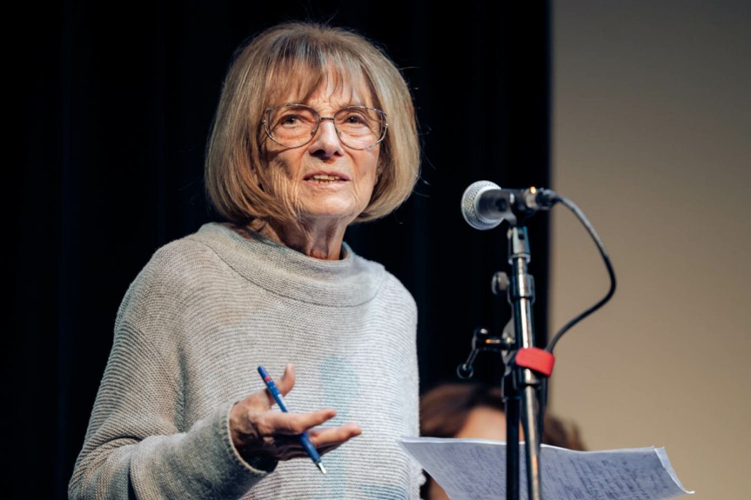 Ezután átadta a szót a díjalapító Radnóti Zsuzsának, aki felidézte az egy évvel ezelőtti díjátadó emlékét, amely éppen egybeesett az ukrajnai orosz agresszió kezdetével. Feltűnőnek nevezte, hogy az utóbbi években egyre több a díjazott munkák között a regényátdolgozás, majd felhívta a figyelmet a drámáknak a magyar történelmi múlt feldolgozásában játszott szerepére, különösen méltatva Spiró György ilyen munkáit. Végül köszöntötte Székely Csabát, az idei díjazottat, aki Mária országa című darabjával győzött, és idén második alkalommal lett díjazott. A „történelmi bohózatból” Alföldi Róbert által rendezett előadás ősbemutatója múlt áprilisban volt a Szegedi Nemzeti Színházban. Szerző és rendező ennyire nagyszerű találkozása ritkaság, tette hozzá, és azt is megtudtuk tőle, hogy Székely előző darabja, a 10 az eSzínházon, a Mária országa pedig Szegeden tekinthető meg.