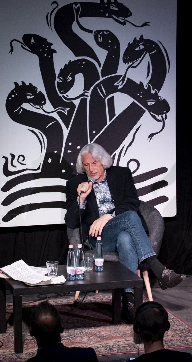 „Tragikus időket élünk. Ilyenkor az orosz irodalomról is nehéz beszélni, de nagyon hálás vagyok a meghívásért, hogy ebben a csodálatos városban lehetek, ahol az olvasóim és a kiadóim működnek. Úgy vélem, a háborút nemcsak a fegyverek segítik túlélni, hanem az irodalom is. A feleségemmel rengeteget ingáztunk az elmúlt tíz évben lakhelyünk, a Moszkva alatti település és Berlin között. Februárban, a háború előtt két nappal Berlinbe repültünk. Azóta ott élünk, és egyelőre nem akarunk visszatérni Oroszországba – bár a barátaim, és a hely, ahol születtem, hiányzik. Most Ukrajna győzelmét várom.” Az író e kijelentését vastapssal fogadta a közönség.