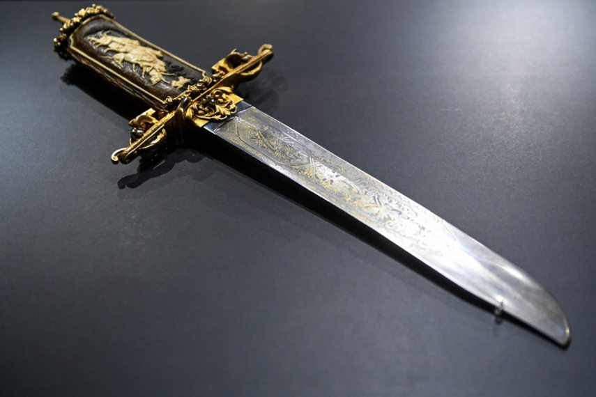 Semjén Zsolt hangsúlyozta, hogy József Ágost a Habsburg-ház nádori, magyar ágának képviselője volt. A főherceg a 20. század elején ajándékba kapta a széles pengéjű vadászkést, amely részben aranyozott keresztvassal rendelkezik, és drágakövekkel, valamint apró gyöngyökkel gazdagon kirakott. Az impozáns fegyver fél méter hosszú és 35 centiméter széles. Kovács Tibor, a kiállítás kurátora kitért arra, hogy