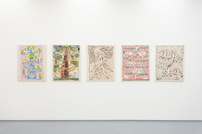Ez a meseillusztrációk vagy a képregények felé közelíti a képeit. A gyermeki perspektíva ezeknél a munkáknál is erősen dominál, játékosságuk azonnal feltűnik. Mégsem válnak illusztrációkká, mivel furcsán ambivalens érzéseket közvetítenek. A Cím nélkül (pink ég, kék fa) például első ránézésre égig érő fát ábrázol, Babszem Jankó történetét idézi fel bennünk. Jobban megnézve azonban már feltűnnek a fatörzsön megjelenő szomorú alakok és az ágon lengő koponya is.