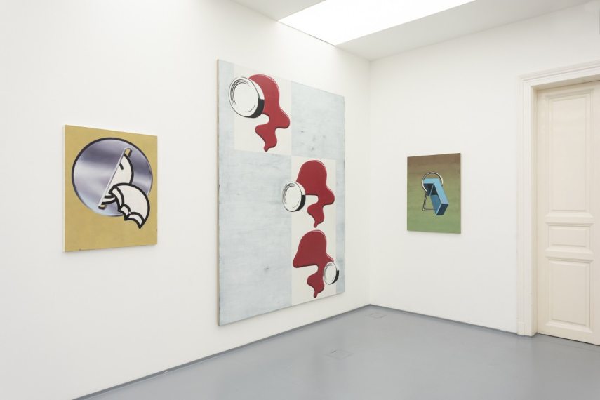 Egészen másképpen keltenek asszociációkat Anne Neukamp munkái. A kiállítás rangidős művészének visszafogott színvilágú képein megjelenő motívumok túlméretezettek vagy túlabsztraháltak, amelyek a klasszikus pop-art tárgyi világát idézik, és korunk technicista mivoltára is reflektálnak. Az Elan például Warhol konzervdobozait is az eszünkbe juttatja, a piros színű amorf minták pedig kiömlő és szertefolyó festékfoltokat idézőek.