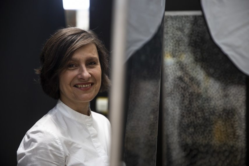 „Mindig is kísérletező alkat voltam, most is terveket készítek, mindig keresem az új anyagkombinációkat, különböző rétegződéseket, miként rakódnak egymásra. Így alakult ki az üvegtextil: az ipari technológiát összekapcsoltam a kézműves jelleggel, különböző hagyományos textiltechnikákat alkalmazok a folyamat során, és ebből egy teljesen új minőségű anyag született” – meséli Hegedűs Andrea.