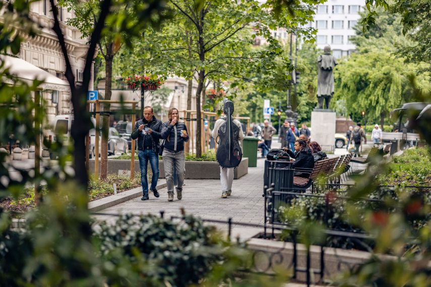 És korzózni is lehet, nem kell attól tartani, hogy a Paulayból bekanyarodó autók elcsapják a gyalogosokat, kaptunk egy jól használható járdát, amelyen séta közben nem kell az Aperolt szürcsölő vendégeket kerülgetni. A környék talán példát adhat a közeli bulinegyednek is, megmutatva, hogy a belvárosnak sem a romok, sem a kocsmák nem állnak jól.
