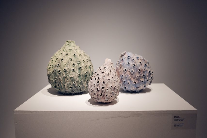 A HAB alsó terme most a kortárs horvát kárpit- és kerámiaművészeté. Biomorf alakzatokat látunk, a természetközeli színek uralkodnak, de a munkák többségén a gömb egységet, teljességet képviselő formája is megjelenik. Áramló, összefonódó, egymásba tekeredő motívumok jellemzik ezeket a műveket, amelyek a természetben jelen levő rendet, a világban mutatkozó tökéletességet jelenítik meg. Azt, hogy a létezés a kontinuitásban, a fluiditásban és az együttműködésben ragadható meg a maga teljességében. Renata Vranyczany Azinović Nagy raj című agyagszobra az egymást támogató halakat építi hatalmas gömbbé, így lesz ez az alkotás nagyon játékos, ugyanakkor az összetartozás fontosságát is hirdeti.