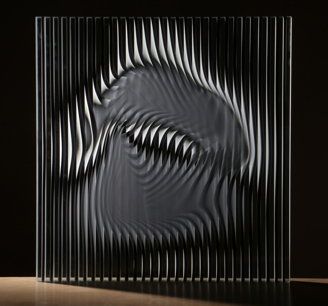 A nyitóképen László Kyra: Csöndszoba, 2021, rogyasztott üveg, 109×68×2 cm. Fotó: Kakas Misi