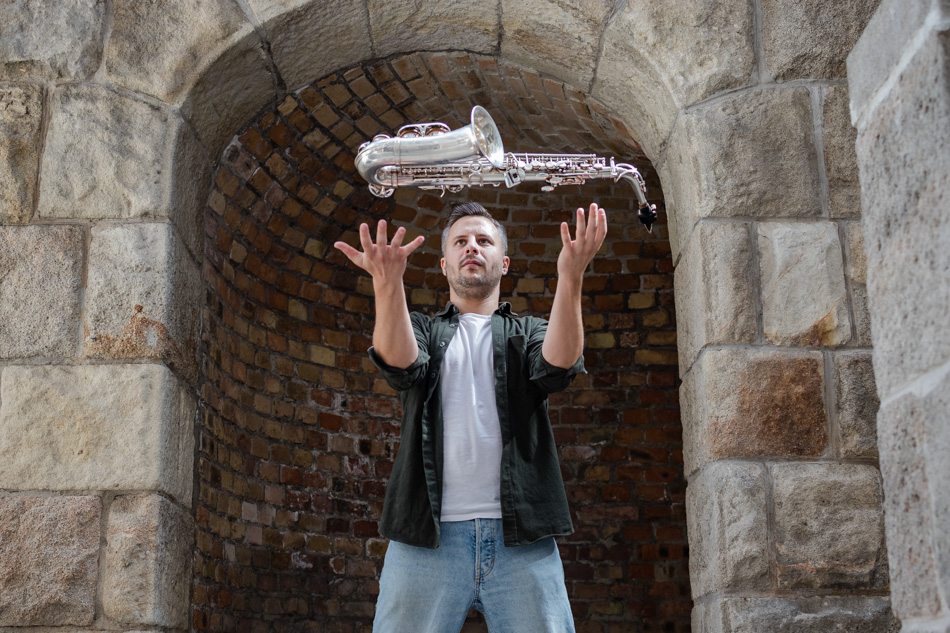 Egyetlen pillanat döntött arról, hogy Vadász Gellértnek a szaxofon lett a hangszere. Ma már nemcsak jazzformációkban zenél, hanem színházban és popszínpadon is.