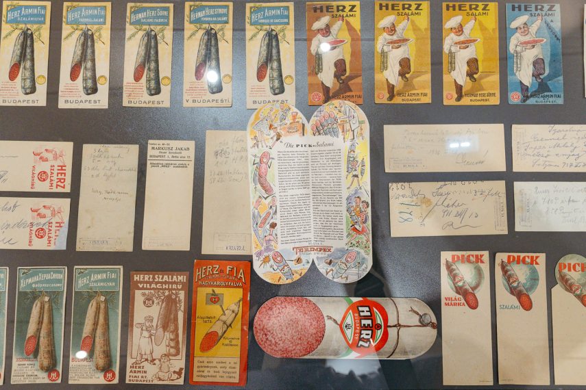 Fontos szerep jutott a kiállításon Debrecen egyik jelképének, az Aranybikának: számos olyan műtárgy látható, amely a szállodához köthető. Hogyan kapcsolódik ez a szalámigyártáshoz?