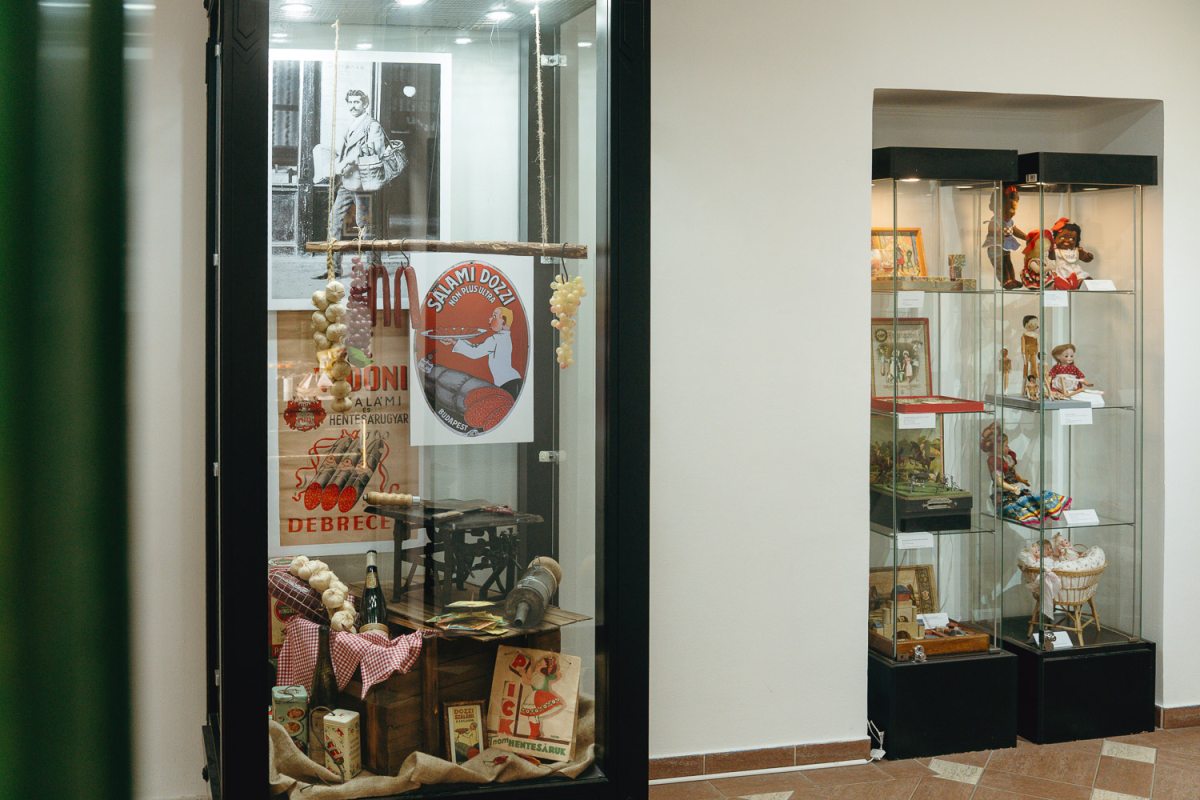 Nem, korábban egy másik hungarikum, a gulyásleves kultúrtörténetét is feldolgoztuk már a Gulyás – Pásztorételtől a magyar konyha szimbólumáig című kiállításon. A Vidoni-féle tárlathoz berendeztünk egy hentesüzletet, hentesköténybe bújhatnak a látogatók, és a hentespult előtt készíthetnek magukról fotókat. Vannak a kiállításnak interaktív elemei is: párosító játék, kirakósok, de van Genially-felület is, itt a látogatók sok színes játékon keresztül ismerkedhetnek meg a szalámival. Látható egy debreceni látkép, előtte két széket és asztalt helyeztünk el, ott egy korabeli újság másolata olvasható, amelyben szerepel a Vidoni család is.