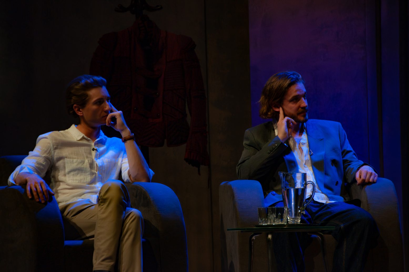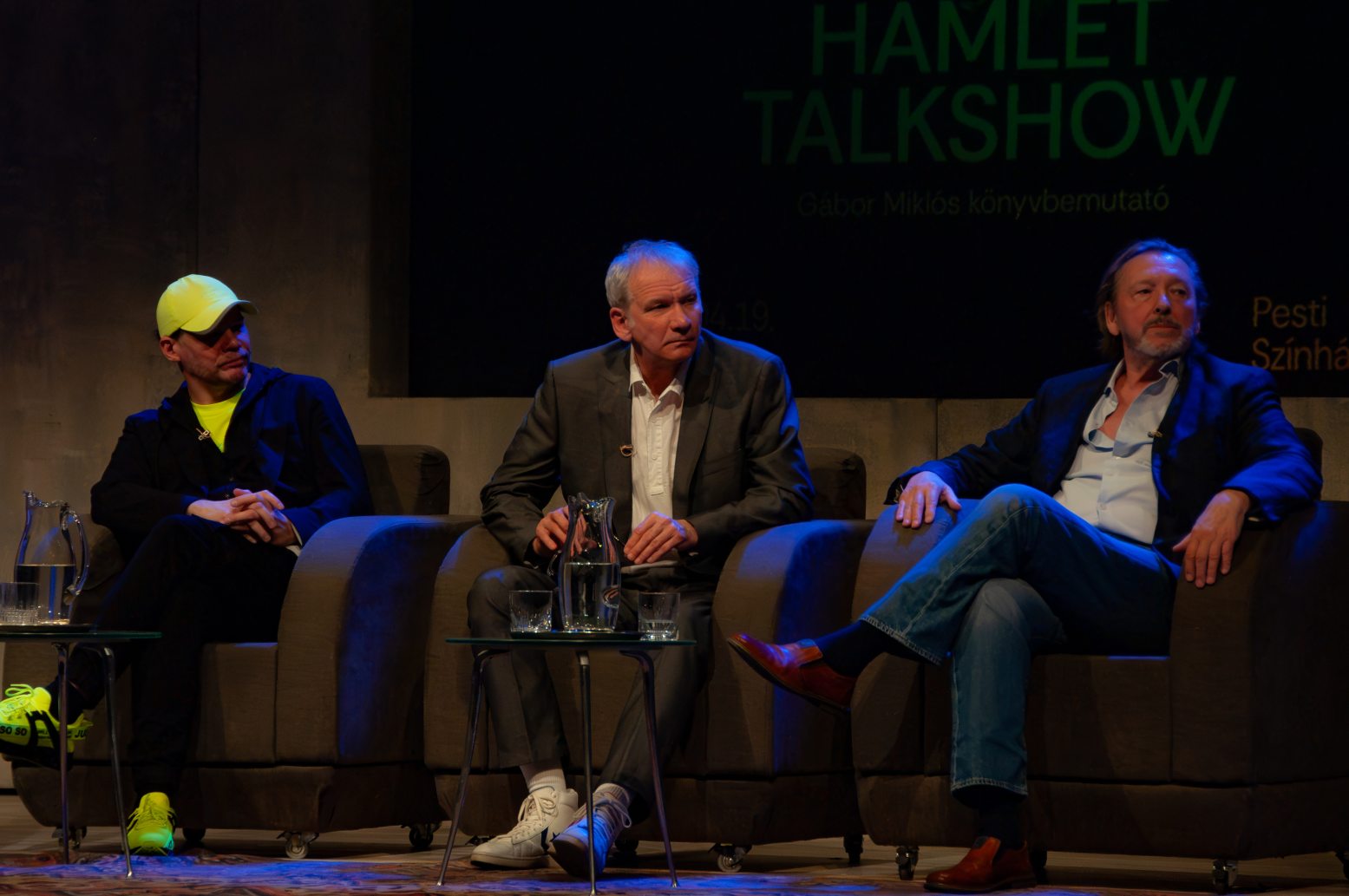 Elsőként Gálffi László lépett színre, majd ült fotelbe, aki a Magyar Televízió számára készült 1984-es Hamlet, dán királyfi című televíziós feldolgozásban alakította a címszerepet Esztergályos Károly rendezésében. A magyar színházi élet egyik legnagyobb aktív művésze azzal a kijelentéssel lepte meg beszélgetőtársait és a közönséget, hogy bizonyos szempontból irigyli jelen lévő kollégáit. Ma is szereti a maga korában forradalmian modernnek számító tévés adaptációt, ám azt sajnálja, hogy színpadon nem élhette át a találkozást Hamlet apja szellemével. Az utána színpadra lépő László Zsolt viszont két rendezői változatban is megtehette ezt. Először 1996-ban az Új Színházban, Ács János rendezésében, 19 évvel később pedig Szikora János látta meg benne a felnőtt Hamletet a Székesfehérvári Vörösmarty Színházban. Kérdésre hangsúlyozta, hogy újabb 19 év múlva – hiába is kérnék fel – biztosan nem fogja vállalni.