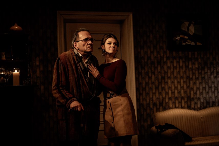 Időutazásra alapuló nyomozásra invitál Kőszegi Ákos. Az Apa egykor sikeres ügyvéd volt, mára magányos öregember. Felesége évekkel ezelőtt elhunyt, két fia ritkán látogatja. Az áldozat státuszából induló Apa felkelti érdeklődésünket, de önzése egyre nyilvánvalóbb, míg a zárlatban mindennek ellenére már szánandó. Kőszegi játéka egy valaha volt formátumos, olykor azonban a környezete számára kifejezetten mérgező személyiség nyomait hordozza. Érzékelhető az ellentmondást nem tűrő, megkérdőjelezhetetlen tekintélyű családfő, akinek a gyerekneveléshez vajmi kevés érzéke volt. Aztán szembetűnő az Anya életerejét kíméletlenül elszívó férj, és végül az Apa, aki nagyon vágyott lánygyermekre, de ez nem adatott meg neki.
