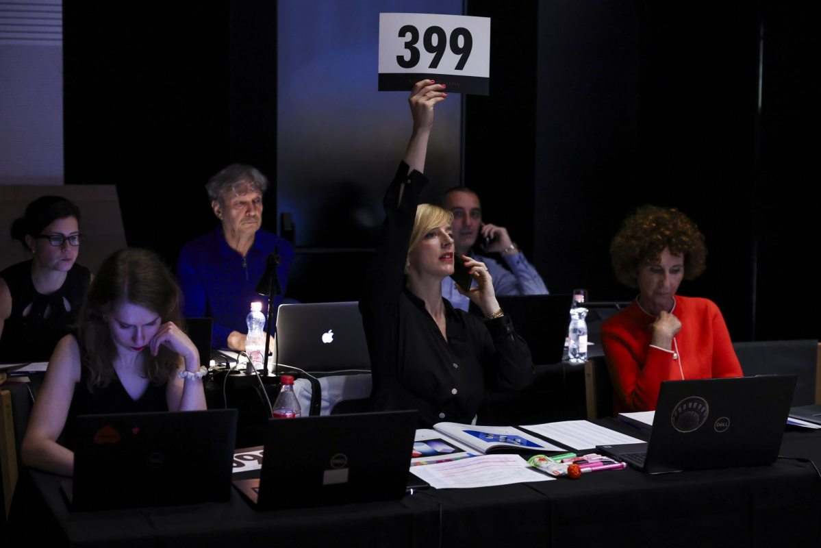 Megduplázta 8 millió forintos kikiáltási árát Reigl Judit Tömbírás, 1964 körül című festménye, és így 16 millió forintért kelt el. A fehér alapon kirajzolódó sávok a tenger felett gyülekező zivatarfelhőkre emlékeztetnek ezen az alkotáson. Reigl Judit élete nagy részét Párizsban töltötte, későn talált rá a hírnév, de most már csúcsokat döntenek a festményei a nemzetközi aukciókon is.