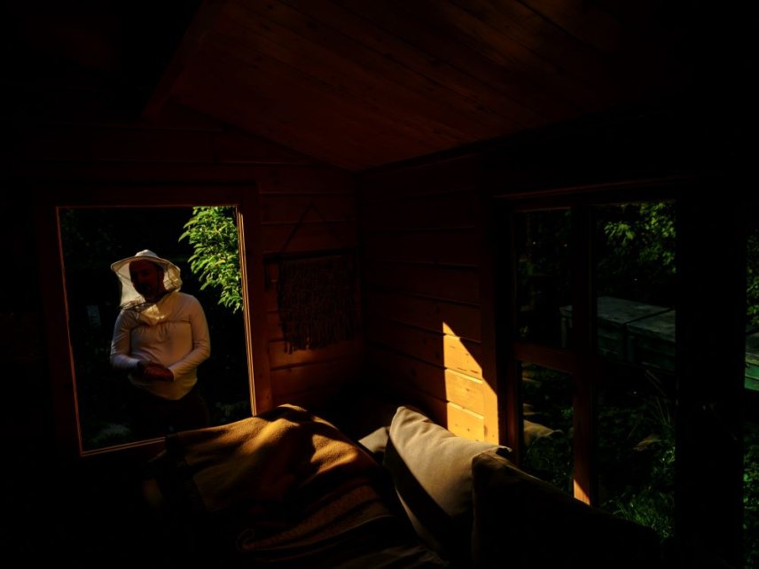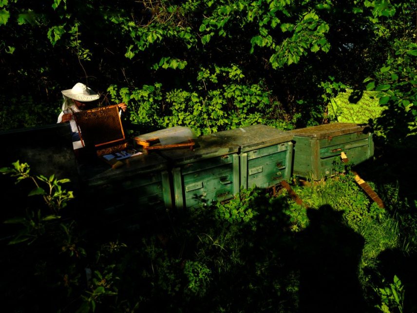 Virág Méhes – olvasom a kapu fölötti táblán, miután leparkolunk a hegy oldalában, és megérkezünk Weiner Sennyey Tiborékhoz. Lali, a házőrző úgy viselkedik, mintha idomított vendégfogadó eb volna, aki rajongással örül minden betérő látogatónak. A szentendrei Kada-csúcs oldalában álló svédvörös faház teraszán egy forgatható ládaféleségben épp méhviasz olvad a napsütéstől, zsong a kert, a fák lombjai közé nyúló teraszról messzire ellátni a völgy fölött. Olyan ez, mint megérkezni egy sokkal szelídebb természetű időbe.