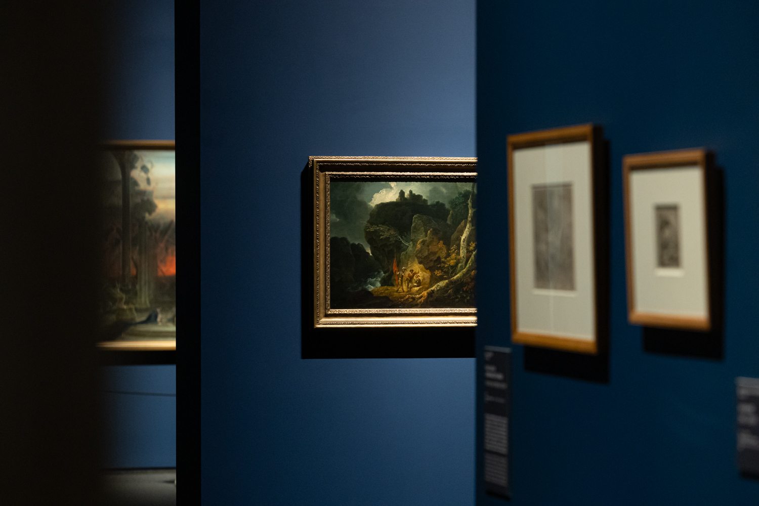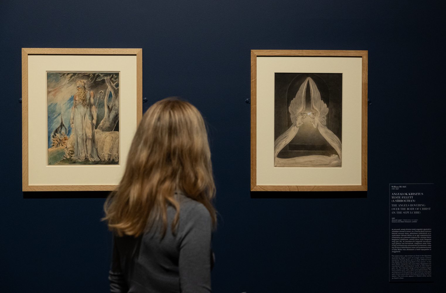 A kiállítás ezt az élményt igyekszik átadni. A termekben viharok, özönvizek, gótikus romok és hegycsúcsok képei váltakoznak az emberi lélek rémisztő mélységeivel és szédítő magasságaival. A mennyből zuhanunk a pokolig, a rémálmokból a tündérmesékig, a groteszktől a szakrálisig, majd vissza. Egyes művekben a természet elementáris erői uralják a vásznat, másutt a belső fenséges manifesztálódik – az a végtelen, ami az ember tudatában születik meg. Blake számára a fenséges nem a világ nagyságáról, hanem a szellem isteni dimenziójáról szól. Látomásokat ábrázolt, amelyek sohasem puszta illusztrációk, hanem belső apokalipszisek és extázisok, ahol az emberi elme szembesül saját határtalanságával.