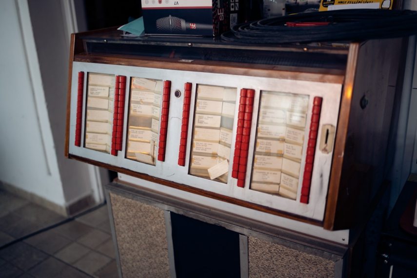 Olyan, mintha valakinek a nappalijába érkeznénk: az egyik oldalt egy egész könyvtárnyi könyv, a polc roskadásig tele izgalmas klasszikusokkal, fontos kortársakkal. Az egyik sarokban kanapéágy, fotelek, kisasztal. Lehuppanunk, miközben Zoli a konyhában vizet tölt. „Itt alszanak a zenekari tagok a lemezfelvételek alatt” – szól ki, miközben a szemem folyamatosan a különböző relikviák között pásztáz. Van itt minden, amitől otthonos érzetünk lesz, még egy ezerévesnek tűnő zenegép is. Működik, tudjuk meg.