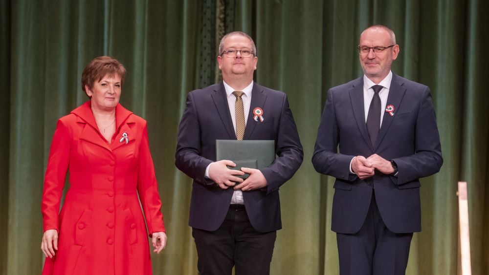 Zsigó Róbert, a Kulturális és Innovációs Minisztérium parlamenti államtitkára állami kitüntetéseket adott át március 15. alkalmából csütörtökön a Pesti Vigadóban.